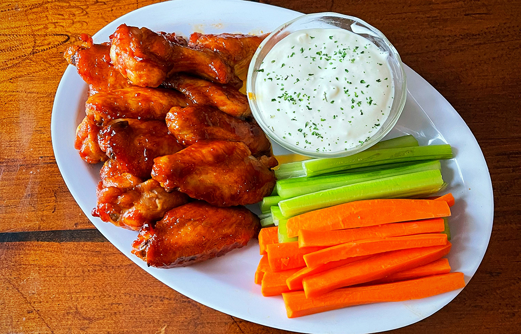 Bring out the crispy hot wings from the oven. Keep the sauce that you just made in a large bowl. Place wings in the sauce and serve with blue cheese or ranch dressing.